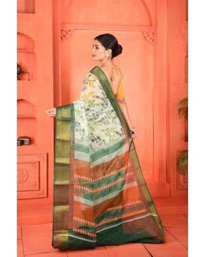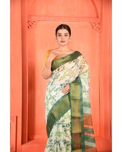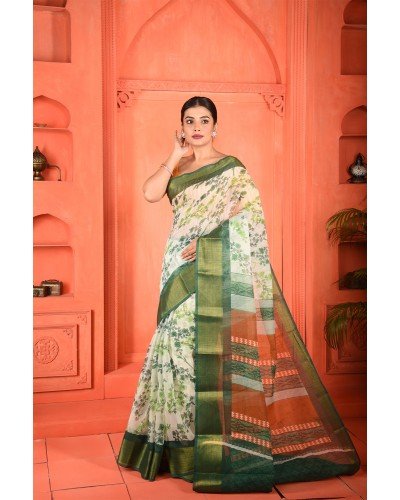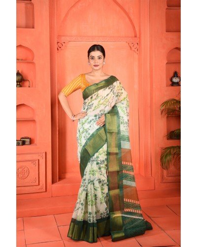 Saree Type: This intricate weave of mixed cotton will give you a stunning look. Your age or skin complexion will matter no more once you put drape this pure elegance. Flaunt the most treasured part of your wardrobe with this beautiful printed saree. The floral prints on the body will give you a spring and joyous look. This creative print with a combination of floral on the body and geometric work on the pallu gives a contemporary look. The colorful stripes on the pallu highlight the look. This overall beauty is completed with a bold and vibrant colored border. Get relieved in the humid summer with this lightweight and breathable piece of mixed cotton. It will be your perfect comfortable outfit without a second thought. The threads by which this saree is woven are of higher quality that yield softer fabric. This marvelous mixed cotton will never fail to leave a lasting impression. The luster and glaze of this piece of cloth tell how beautifully it is woven.